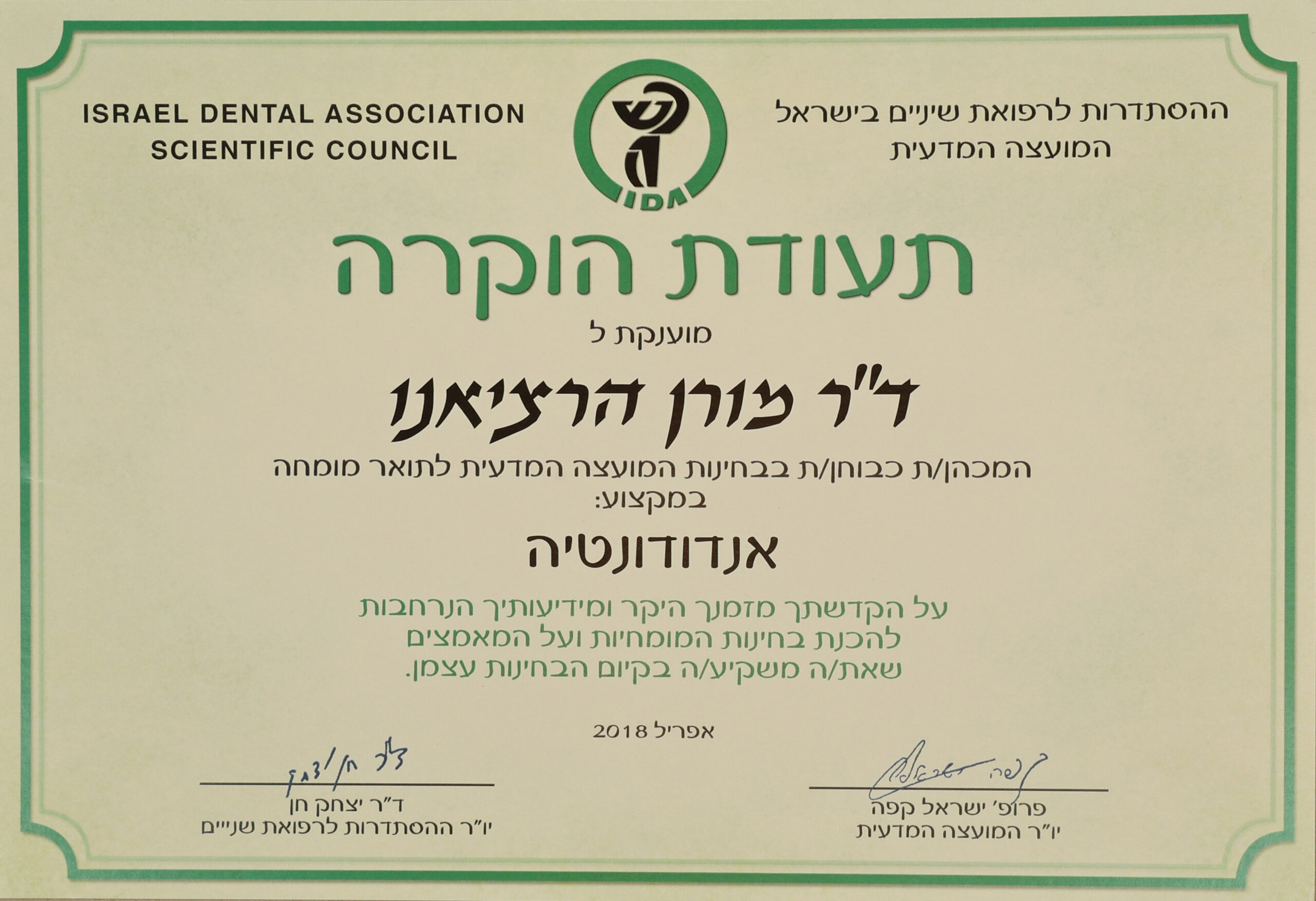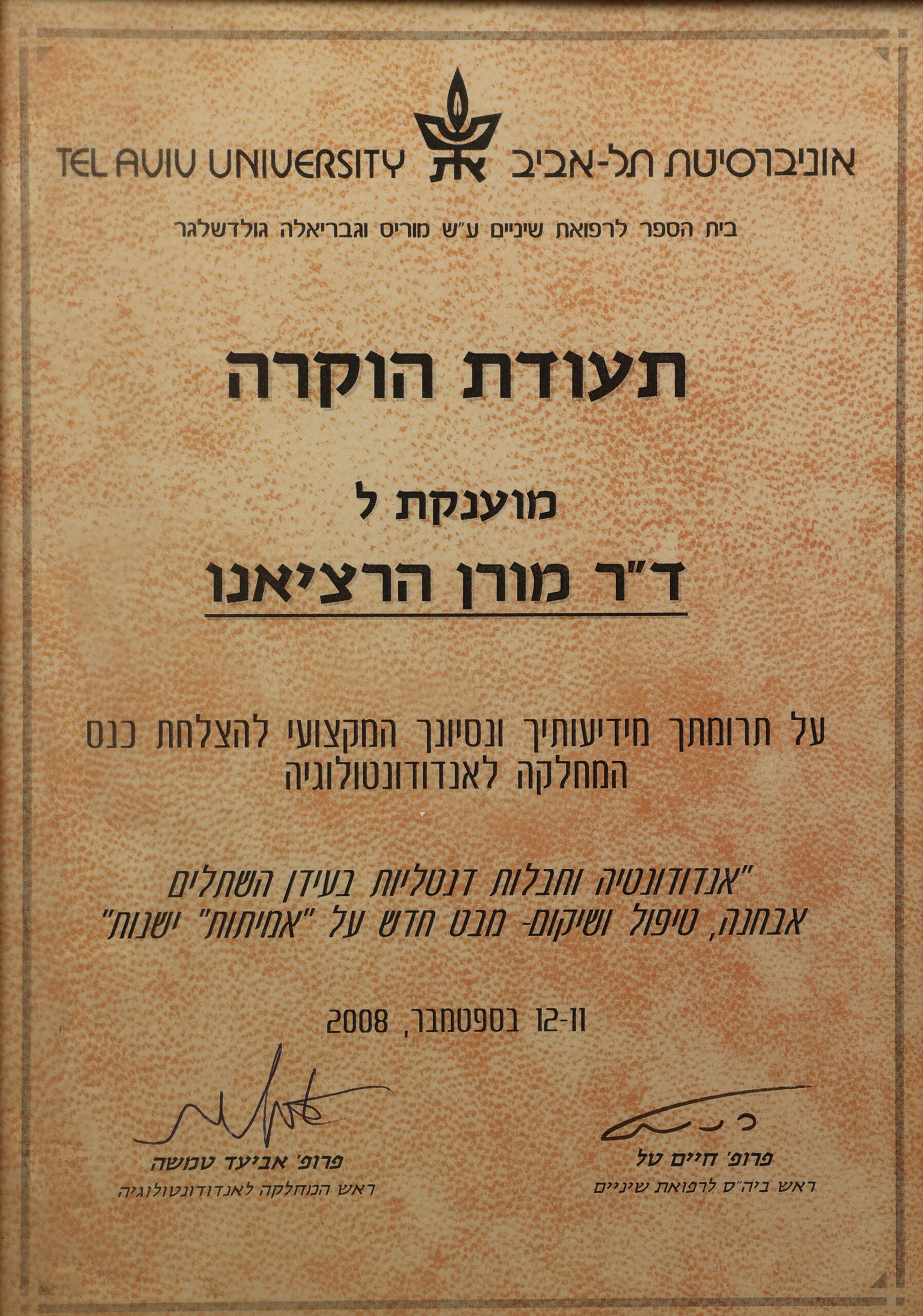 ד"ר מורן הרציאנו, מומחית טיפולי שורש במבוגרים וילדים